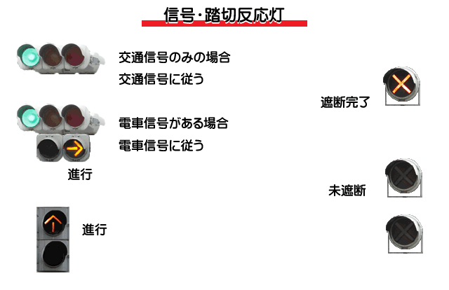 電車信号がある場合は交通信号の灯火に関わらず電車信号に従います。